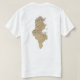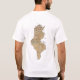La parte delantera de esta camiseta tiene una pequeña bandera tunecina con su conocida media luna roja y su estrella en un círculo blanco centrado en un fondo rojo, mientras que la parte trasera muestra un mapa de Túnez en relieve. Disponible en camisetas, sudaderas, charcutería, mangas largas y más.