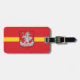 Etiqueta del equipaje con diseño con bandera de Vilnius, capital de Lituania; bandera roja con franja amarilla y escudos de armas con dos leones dorados sosteniendo un escudo en el centro