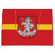Bolsa grande de regalo con diseño con bandera de Vilna, capital de Lituania; bandera roja con franja amarilla y escudos de armas con dos leones dorados sosteniendo un escudo en el centro
