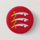 Botón redondo con diseño con una bandera del histórico condado de Essex, en Inglaterra, Gran Bretaña; bandera roja con tres espadas sajonas blancas con hilatura dorada (Sajas)