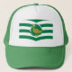 Gorra con diseño con una bandera del condado histórico de Wiltshire, en Inglaterra, Gran Bretaña; bandera blanca y verde con rayas anguladas y gran bustaza en el centro