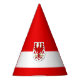 Gorra fiesta con bandera de Brandenburgo (Brandenburgs), diseño con dos bandas de rojo y blanco con el escudo de armas del estado con un ilustracion de águila roja en el centro