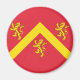 Magnet con diseño con bandera del condado histórico de Anglesey, en Gales, Gran Bretaña; bandera roja con chevron amarillo y tres leones; los brazos atribuidos de Hwfa ap Cynddelw, la insignia tradicional del condado