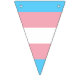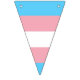 Banner de agrupamiento fiesta con bandera transgénero con rayas de arcoiris rosadas, azules y blancas; diseño de orgullo trans