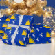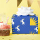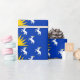 Papel de envolver con diseño con una bandera del condado histórico de Mérioneth, en Gales, Gran Bretaña; bandera azul azul azul azul con tres cabras blancas y sol amarillo