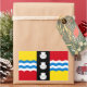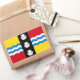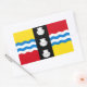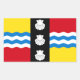 Pegatina con diseño con bandera del condado histórico de Bedfordshire, en Inglaterra, Gran Bretaña; bandera roja y dorada con banda vertical negra con vieiras blancas arbóreas en el centro