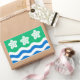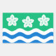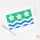 Pegatina con diseño con bandera del histórico condado de Cumberland, en Inglaterra, Gran Bretaña; bandera verde con tres flores Parnassus y olas blancas y azules
