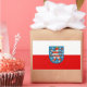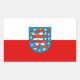 Pegatina con bandera variante de Turingia; diseño con dos bandas horizontales de rojo y blanco, y emblema con león en el centro