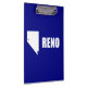Portapapeles con bandera de la ciudad de Reno, Nevada; bandera azul con forma blanca de Nevada con estrella que simboliza la ubicación de Reno dentro del estado