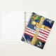 Patriotic Daily Planner con la bandera estadounidense delante de una imagen de la tierra, y una cruz de color dorado sobre la bandera. Back of the Daily planner tiene espacio para descargar 4 fotos. De HAMbyWhiteGlove.