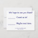 Agregue una tarjeta R.S.V.P. a su invitación. De esta manera, sabrá cuántas personas esperan de su fiesta. La tarjeta se puede crear con tu propio sentimiento. Elige tu fuente y colores.