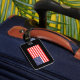 Etiquetas de equipaje de la bandera estadounidense patriótica para bolsas y maletas. Bandera roja blanca y azul de Estados Unidos. Estrellas y rayas de diseño de EE.UU. para hombres y mujeres viajantes. También agradable como accesorio del 4 de julio/Día de la Independencia fiesta. Regalo personalizado con texto personalizado.