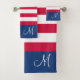 Este divertido patrón moderno rojo, blanco y azul hace que sea un gran juego de toallas de baño para acentuar tu decoración moderna. Personaliza tu monograma para tener un conjunto monogramado con un chic hotelero divertido.