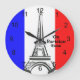 Bandera francesa y reloj de diseño de contorno de la Torre Eiffel con texto de personalizable.
