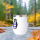 El tumbler termal personalizado de vino incluye a la señora Penguin con su bandera azul y blanca de Grecia. Cambie las palabras de la burbuja de palabras de la señora Penguin con su mensaje especial. Brindar la persona de cumpleaños o celebrar el Día de Oxi. No olviden el Día de Conciencia del Pingüino. Diversión de llevar a un encuentro de amigos o familiares y a un evento de club o grupo de viajes.