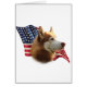 ¡USA! ¡Estados Unidos! Grita tu orgullo con esta impresionante bandera Patriótico de fondo con este Husky Siberiano rojo de raza de perro AKC al frente. Muestra tu orgullo con este diseño en una camiseta, taza, cadena de claves, tote, imán, botón o tarjetas de felicitación.