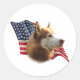 ¡USA! ¡Estados Unidos! Grita tu orgullo con esta impresionante bandera Patriótico de fondo con este Husky Siberiano rojo de raza de perro AKC al frente. Muestra tu orgullo con este diseño en una camiseta, taza, cadena de claves, tote, imán, botón o tarjetas de felicitación.