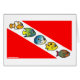 ¡Los pescados de Scubadorable se reúnen para hacer que el buceador rojo-rayado abajo señala totalmente lindo por medio de una bandera! Los pescados del dibujo animado son todos hicieron en el estilo estupendo-lindo de Scubadorable. Grandes regalos aquí para las fans de los buceadores y de los pescados. ¡Éste no es su diseño medio de la bandera del equipo de submarinismo!