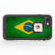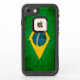 Sobre la bandera de Brasil hay un fondo artístico. Verdes vivos.