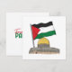 La bandera de Palestina encima de la Cúpula de la Roca en un fondo blanco y en el reverso la frase "Palestina Libre"