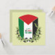 "La bandera palestina rodeada de ramas de olivo con la frase 'Regresaremos."