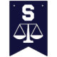 La creativa decoración fiesta de las felicitaciones de los abogados, con la presencia de Scales of Justice de fondo azul marino.
