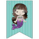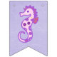 Banderas de Garland del partido de cumpleaños de Sirena. Púrpura, Verde azulada, rosa, con sirenas, cangrejos y caballitos de mar.