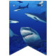 Banderas mostradas con una foto impresa de tiburones. Personalizar este artículo o compra tal cual.