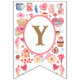 Banderines Acuarela rosa dulce con oso de peluche y corazón