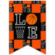 Canteras de baloncesto, cumpleaños del jugador de baloncesto. Baloncesto Banderas De Bunting Party Nocturno Nocturna Y Deportiva Naranja. Balas de básquetbol con un Feliz cumpleaños con un fondo negro.