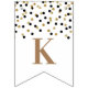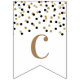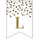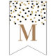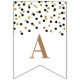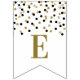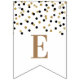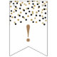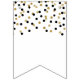 Banner de bienvenida con un patrón de confeti negro y dorado.