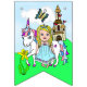 Pancarta de cumpleaños con temática de cuento de hadas dibujada a mano para una niña a la que le gustan las princesas y los unicornios.