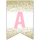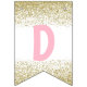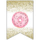 Banner de cumpleaños feliz de donut Gold Sprinkles con ilustracion acuarela de un donut rosado con rociadores de oro. Parte de una colección. Elementos coincidentes disponibles.