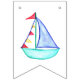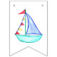 ¿Planeando una fiesta de cumpleaños náutico? Barcos acuáticos con acentos rojos, verdes y amarillos, letras azules nítidas para un banner de encanto que se coordinará con muchos tragaluces de verano.