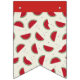 Este banner de verano rojo y blanco está adornado con sandías tiradas. Tan lindo para tu fiesta interior o exterior, picnic u otro evento. 16 indicadores para que añada letras o texto, si lo desea. La elección de la forma triangular o de trinquete.