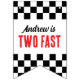 Esta pancarta presenta un diseño de coches de carreras rojas, negras y blancas para un niño de 2 años, con el popular dicho "demasiado rápido". Personalízalo añadiendo fotos de personalizados junto con el nombre y la edad de su hijo. Un banner divertido y colorido, perfecto para una fiesta de cumpleaños con temática de autos de carrera.