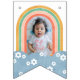 Creado para coordinar con la suite invitada por el cumpleaños "Retro Rainbow", este banner de aposento presenta un colorido diseño de arcoiris y nubes con un puñado de daisies dispersos por todos lados. El mensaje "Cumpleaños feliz" está escrito en una fuente de inspiración retro, y se coloca sobre un fondo de patrón diagonal. Los paneles de arco iris incluyen espacio para una foto, o se pueden retirar las fotos. Mientras que este afiche fue creado para la fiesta de cumpleaños de un niño, creo que sería perfecto para una ducha de bebé también.