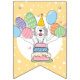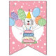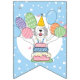 Haga especial su cumpleaños Blue Merle Sheepadoodle con nuestro adorable diseño de temática canina con un gorra fiesta y globos de colores.