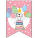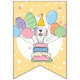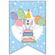 Haga especial su cumpleaños Blue Merle Sheepadoodle con nuestro adorable diseño de temática canina con un gorra fiesta y globos de colores.