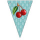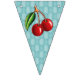 Utilizando productos de uso comercial, he creado este Bunting de cerezos retro. Es muy luminoso y cereza y luciría muy bien adornando tu casa. Usted podría usar este paquete para una venta en el mercado de Retro o evento/fiesta. Este racimo mide 2 metros de largo. Cada bandera mide 5,5 x 8 pulgadas.