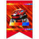 Fiesta de coches de carreras para niños Bunting con un coche de carreras de historietas sobre un fondo rojo, una bandera a cuadros, un coche de carreras con fondo azul y una bandera a cuadros.
