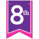 Caballeros escudo medieval con temas rosa y morado Feliz cumpleaños, fiesta de banderas. Personalice con el año de cumpleaños de su hijo. Actualmente se lee Feliz octavo cumpleaños. Coincide con otros artículos de la colección de chicas de escudo medieval de los caballeros princesas. Presenta un escudo regal en púrpura y rosa con una cabeza de unicornio, estrella, número de edad y diseño de la corona de princesa. Todo el arte y diseño originales de Sarah Trett. www.sarahtrett.com para www.mylittleeden.com