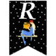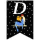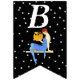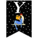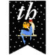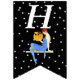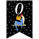 Este cartel con forma de bandera que muestra la pancarta de Cumpleaños Feliz es negro con estrellas blancas y una dama con el pelo rojo en un vestido azul sentada en una repisa girando sus perlas con la luna detrás de ella. Personalizar el año de cumpleaños y texto con las plantillas.