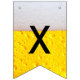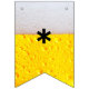 Esta divertida pancarta parece una cerveza de oro realista con una cabeza blanca espumosa.