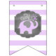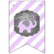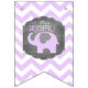 Lavanda e impresiones blancas con el marco de la pizarra y la bandera del empavesado de la fiesta de bienvenida al bebé del elefante de la lavanda para la niña.