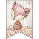 Pancarta de la ducha de bebé de chica con adorables animales de bebé en un fondo de madera floral rosa y dorada en un bonito. Esta pancarta de la ducha de bebé en un bosque puede ser personalizada con texto.