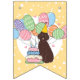 Haga especial su cumpleaños Brown Aussiedoodle con nuestro adorable diseño de temática canina con un gorra fiesta y globos de colores.