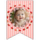 Celebrate your baby girl’s journey from birth to her "Berry First" birthday with this stunning Coquette Photo Bunting Flags! This personalized banner is the perfect centerpiece for your party decor, featuring a delightful blend of watercolor strawberries, delicate pink coquette bows, and a classic red gingham pattern.
