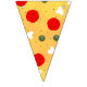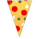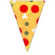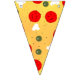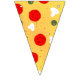 Fiesta fiesta Pizza Suministros Decoración interior o al aire libre Banderas Bunting Flags para celebrar el cumpleaños de los niños. Jugoso vector pizza hecha con costra crujiente, queso, salami, champiñones, aceitunas y una rociada de orégano.