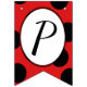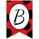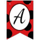 Unirse al tema fiesta es un banner de afiche fiesta con las letras "Feliz Cumpleaños" en cada bandera y un fondo rojo con puntos negros y un oval blanco rodeando cada letra. Como parte del tema "Ladybug", este es un lindo diseño para los chicas en su día especial de celebración.